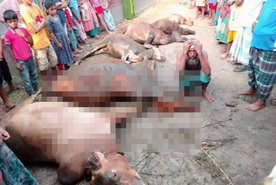 খামারি শফিক জানান, রাত ১১টায় গরুগুলোকে খাবার দিয়ে আমি ঘুমাতে যাই। রাত প্রায় ১টায় গরুর ছোটা ছুটি শব্দে আমার ঘুম ভাঙে। তখন গোয়াল ঘরে দরজায় হাত স্পর্শ করেতই শক খেয়ে মাটিতে আছড়ে পড়ি। তাৎক্ষনিক উঠে ঘরের মেইন সুইচ বন্ধ করে গোয়াল ঘরে গিয়ে দেখি ৬টি গরু মারা গেছে। আর বাকী ৫টি গরু অসুস্থ হয়ে পড়ে আছে।