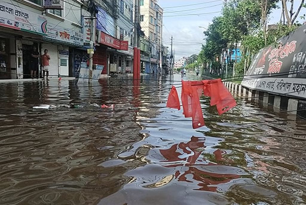 সোমবার ভোররাত থেকে একটানা মাঝারি ও ভারি বর্ষণে নগরের অধিকাংশ রাস্তাঘাটে হাঁটুপানি জমেছে। টানা প্রবল বর্ষণ, উঁচু জোয়ারের পাশাপাশি দিনভর ঝোড়ো বাতাসে স্থবির হয়ে পড়েছে বরিশাল নগরের জীবনযাত্রা। রবিবার রাত থেকে বরিশালে বৈরী আবহাওয়া এবং থেমে থেমে বৃষ্টি শুরু হয়।