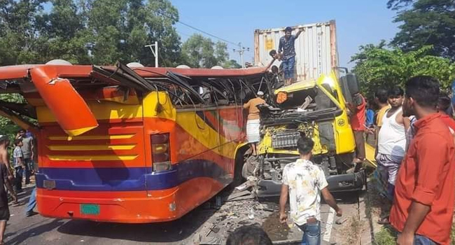 বুধবার বেলা ১১টার দিকে ফেনী বাইপাস অংশের ফতেহপুর এলাকায় এ দুর্ঘটনা ঘটে। নিহতরা হলেন- কাভার্ডভ্যানচালক কুমিল্লা সদর থানার দুর্গাপুর এলাকার নাজমুল (৩৫), ফিরোজপুর জেলার নেছারাবাদ থানার ফোরকান (৫০) ও লক্ষ্মীপুর জেলার রিয়াজ উদ্দিন। অপর নিহত ব্যক্তির পরিচয় জানা যায়নি।