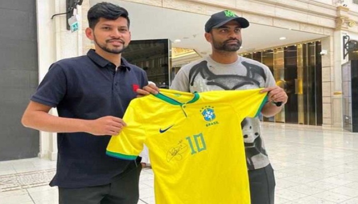 এর আগে, সামাজিক যোগাযোগ মাধ্যমে তামিমকে নেইমারের অটোগ্রাফ ব্রাজিলের জার্সি তুলে দিচ্ছেন রবিন এমনই দুই-তিনটি ছবি ভাইরাল হয়।