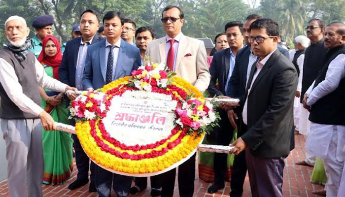 এরপর পর্যায়ক্রমে পুষ্পস্তবক অর্পণ করেন বিভাগীয় কমিশনার আমিন উল আহসান, ডিআইজি এসএম আক্তারুজ্জামান, পুলিশ কমিশনার সাইফুল ইসলাম ও জেলা প্রশাসক জাহাঙ্গীর হোসেন।