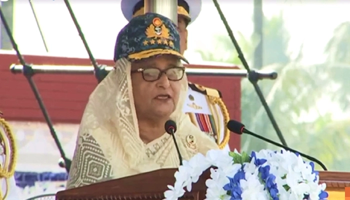 শেখ হাসিনা বলেন, ২০০৯ সালে সরকার গঠনের পর ১৯৭৪ সালের প্রতিরক্ষানীতির আলোকে ‘ফোর্সেস গোল ২০৩০’ প্রণয়ন ও বাস্তবায়ন শুরু করি। গত ১৪ বছরে নৌবাহিনীতে ৪টি ফ্রিগেট, ৬টি করভেট, ৪টি লার্জ পেট্রোল ক্রাফট, ৫টি পেট্রোল ক্রাফট এবং ২টি ট্রেনিং শিপসহ মোট ৩১টি যুদ্ধজাহাজ সংযোজন করি। দক্ষ কমান্ডো ও উদ্ধারকারী দল হিসেবে ‘স্পেশাল ওয়ারফেয়ার ডাইভিং অ্যান্ড স্যালভেজ কমান্ড’ এবং নৌবাহিনীর এভিয়েশন উইং প্রতিষ্ঠা করি। ২০১৭ সালে ২টি সাবমেরিন সংযোজনের মাধ্যমে একটি পূর্ণাঙ্গ ত্রি-মাত্রিক নৌবাহিনী প্রতিষ্ঠা করি।