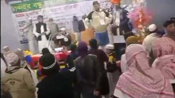 এ সময় সেখানে উপস্থিত মুসল্লিরা ওই সভাপতিকে লক্ষ্য করে জুতা নিক্ষেপ করেন। এতে হট্টগোল বেঁধে ওয়াজ মাহফিল পণ্ডু হয়ে যায়। এ সময় আয়োজক কমিটির পক্ষ থেকে আগত মেহমানদের নিরাপদ আশ্রয়ে সরিয়ে নেওয়া হয়।