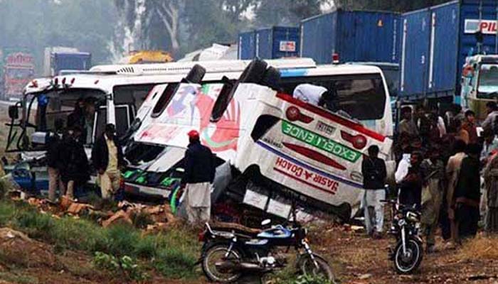 দুর্বল সড়ক অবকাঠামো ও ট্র্যাফিক আইন অমান্য করার কারণে পাকিস্তানে মারাত্মক দুর্ঘটনা সচরাচর ঘটে।