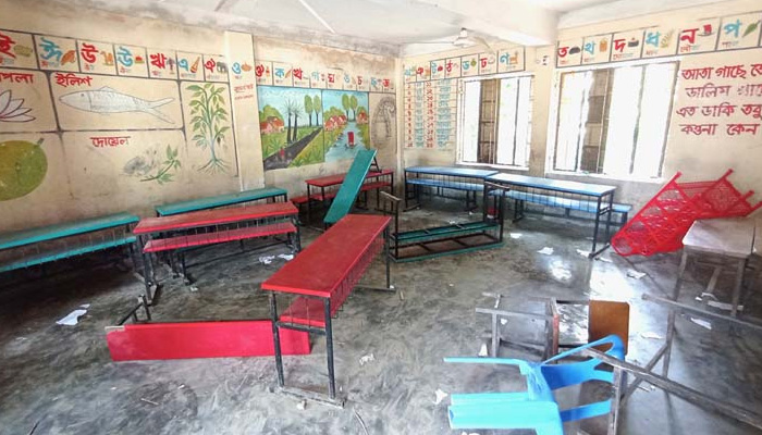 পরে প্রধান শিক্ষিকা বিষয়টি তাৎক্ষণিক মাহিনের বাবাকে অবহিত করলে মাদকসেবীদের সংঘবদ্ধ চক্রটি দেশীয় অস্ত্রশস্ত্রে বিদ্যালয়ের প্রাক-প্রাথমিক শ্রেণিকক্ষের তালা ভেঙে প্রবেশ করে কক্ষের ফ্যান, লাইট, বেঞ্চ ও দরজা জানালা কুপিয়ে তছনছ করে। এতেও ক্ষান্ত না হয়ে প্রধান শিক্ষিকার বসতঘরসহ গোয়াল ঘরে হামলা চালায় এবং তাকে প্রাণনাশের হুমকি দেয়। এ সময় তিনি নিরুপায় হয়ে ৯৯৯ এ কল দিলে পুলিশ ঘটনাস্থলে যাওয়ার পর হামলাকারীরা পালিয়ে যায়।