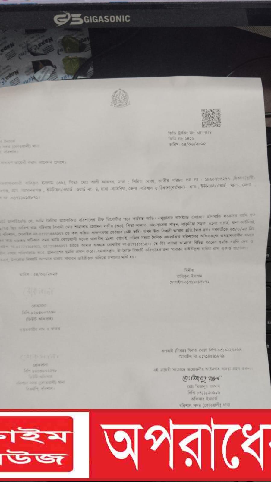 জীবন রক্ষার্থে সাংবাদিক তারিকুল ইসলাম বরিশাল কোতোয়ালি মডেল থানায় বরিশাল নথুল্লাবাদ বাস স্ট্যান্ড থেকে মানুষকে জিম্মি করে চাঁদা উত্তোলনকারী শাহাদাত হোসেন সজীবের বিরুদ্ধে হত্যার হুমকি ধানের বিষয় একটি সাধারন ডায়েরি করেন।যাহার ডায়েরি নাম্বার ১৪২৬।