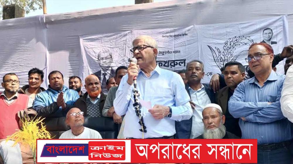 শনিবার (২৪ জানুয়ারি) দুপুরে ঠাকুরগাঁও সদর উপজেলার আউলিয়াপুর ইউনিয়নে গণসংযোগে বক্তব্য রাখছিলেন মির্জা ফখরুল।