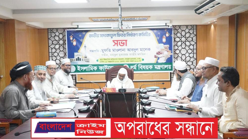 বুধবার (২৫ ফেব্রুয়ারি) দুপুরে ইসলামিক ফাউন্ডেশন বায়তুল মোকাররম সভাকক্ষে জাতীয় সাদাকাতুল ফিতরা নির্ধারণ কমিটির সভায় এ সিদ্ধান্ত হয়েছে। সভায় সভাপতিত্ব করেন জাতীয় ফিতরা নির্ধারণ কমিটির সভাপতি ও বায়তুল মুকাররম জাতীয় মসজিদের খতীব মুফতি মুহাম্মদ আবদুল মালেক।