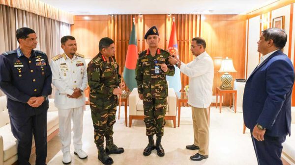 সশস্ত্র বাহিনী বিভাগের নতুন প্রিন্সিপাল স্টাফ অফিসার (পিএসও) লেফটেন্যান্ট জেনারেল মীর মুশফিকুর রহমান এবং প্রতিরক্ষা গোয়েন্দা মহাপরিদপ্তরের (ডিজিএফআই) নতুন মহাপরিচালক মেজর জেনারেল মোহাম্মদ কায়সার রশিদ চৌধুরীকে র্যাংক ব্যাজ পরিয়ে দিয়েছেন বিস্তারিত..