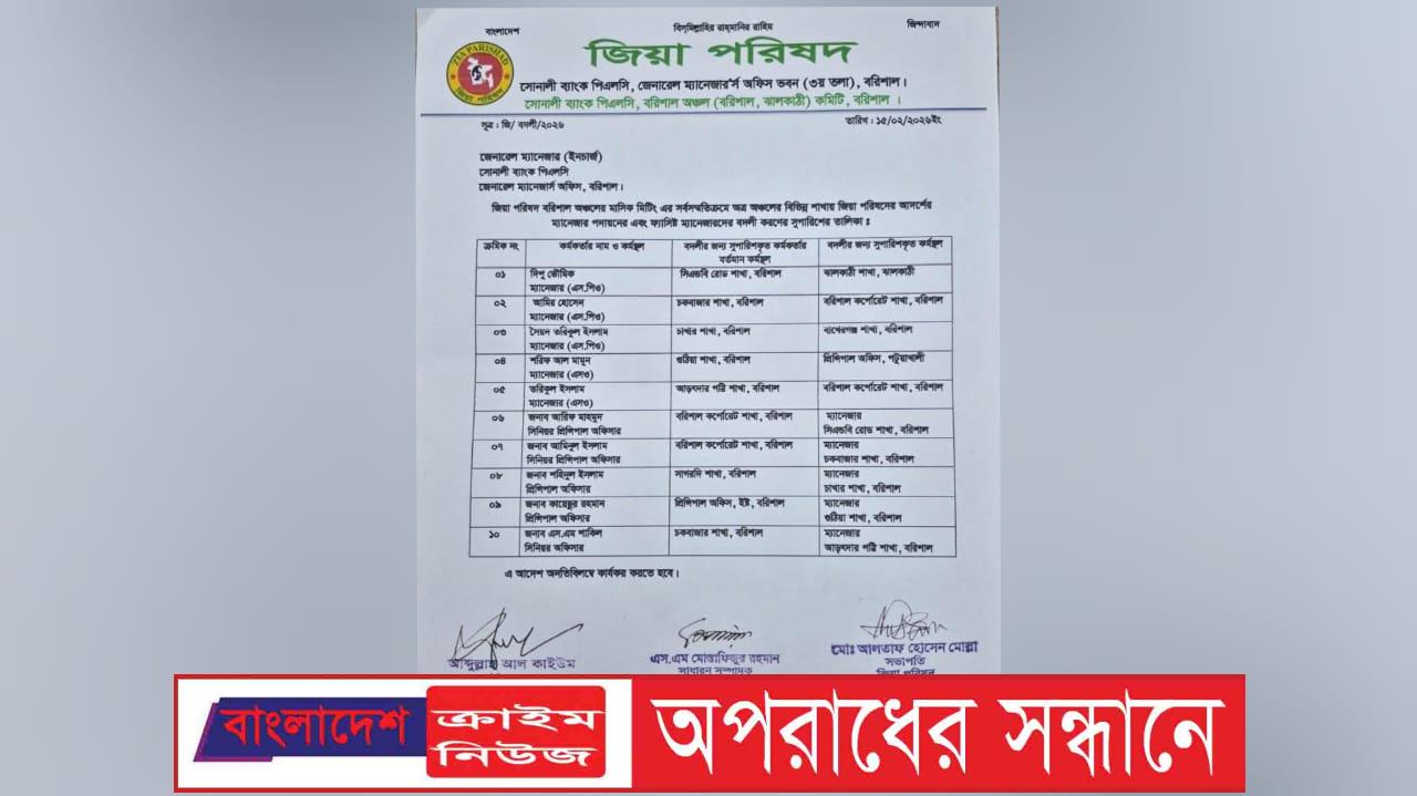 সোনালী ব্যাংক বরিশাল অঞ্চলে বদলি–বাণিজ্যের অভিযোগ: জিয়া পরিষদ কমিটি ঘিরে বিতর্ক!